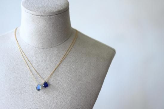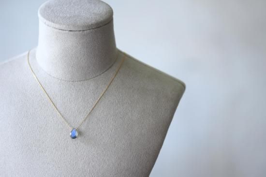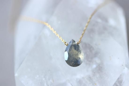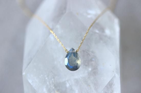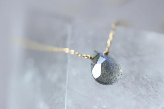 ブルーシラーが強いラブラドライトは、K18で一粒ネックレスに。