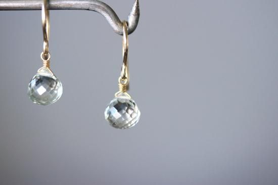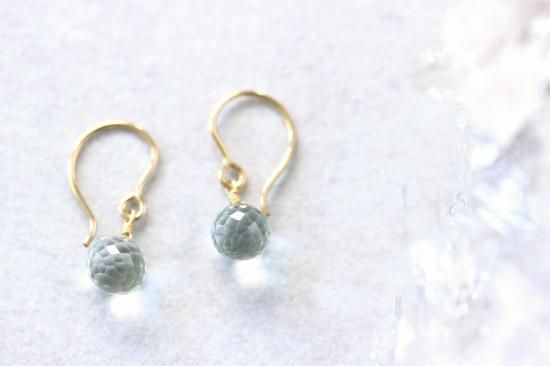 グリーンアメジスト、オニオンカットの一粒ピアスです。