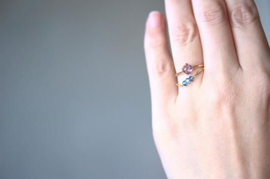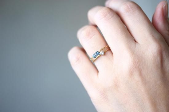 石のついたチェーンリングは一粒で着けても十分な存在感ですが、