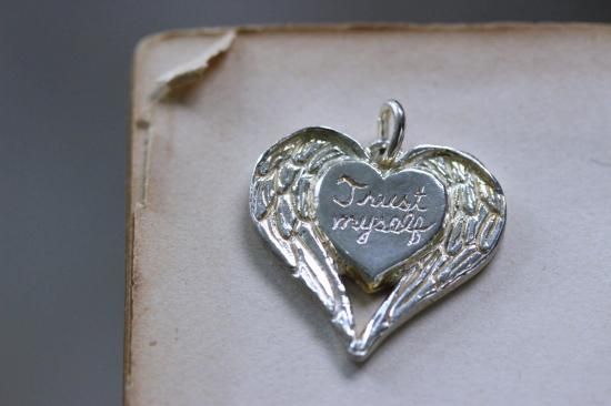 羽を宿したハートのモチーフの中には「Trust yourself」とメッセージを添えました。