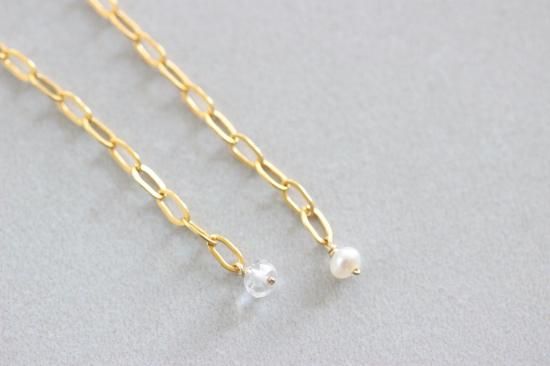 *淡水パール(ポテト)3mm、クリアクォーツ(ボタンカット) 3.5×2.5mm
